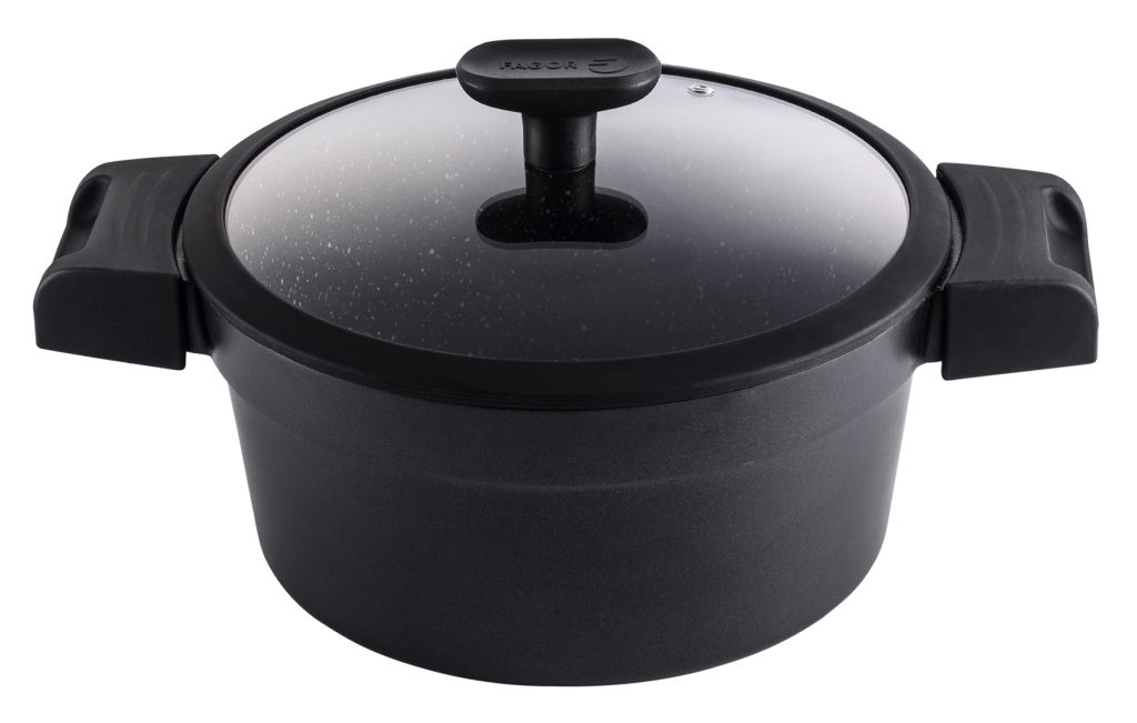 1 25L FABRICADO EN ACERO INOXIDABLE 18/10 TRIPLE FONDO DIFUSOR QUE ASEGURA UN EFICIENTE REPARTO DEL CALOR APTO PARA TODO TIPO DE COCINAS INCLUIDAS LAS DE INDUCCIÓN APTO PARA LAVAVAJILLAS TERMINACIÓN DEL CUERPO EN ACERO SATINADO SALVO EN SU PARTE SUPERIOR MANGO FABRICADO EN ACERO INOXIDABLE CON ACABADO PULIDO