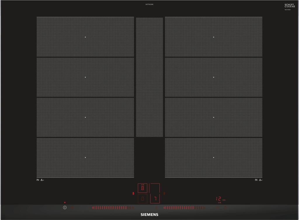 EX775LYE4E. Placa de inducción de 70 cm de ancho.. Diseño topClass.. Color negro.. EAN: 4242003757826Control LightSlider con 17 niveles de potencia.. 2 zonas de inducción con función Sprint y shortSprint:. 2 zonas flexInducción Plus de 23 x 38 cm. con 1 inductor adicional.. Función transfer.. Función powerMove: 3 pasos.. Preparado para cookingSensor.. Control de temperatura del aceite: fryingSensor con 5 niveles de temperatura.. Función quickStart: detección automática de zona. Función memoria de ajustes seleccionados. Función limpieza: bloqueo temporal del control. Indicador de energía consumida. Función mantener caliente en todas las zonas.. Programación de tiempo y avisador acústico para cada zona.. Cronómetro.. Función silencio: 3 modos de indicadores acústicos. Seguridad para niños automática o manual. Autodesconexión de seguridad de la placa. Potencia total de la placa limitable por el usuario. Indicador de calor residual en 2 niveles. Incluye recetario y guía rápida para el control de temperatura: fryingSensor. Combinación perfecta con placas de diseño topClass