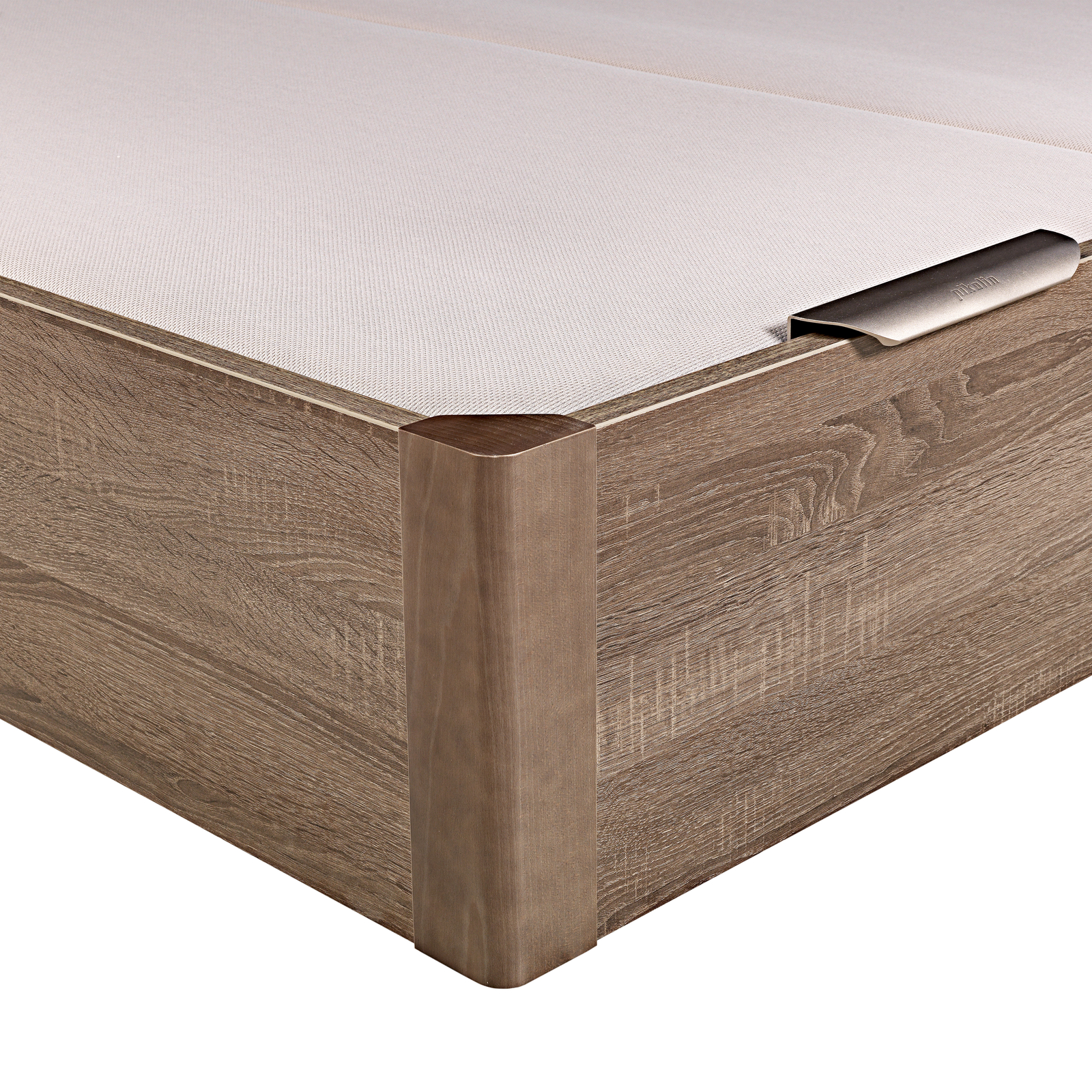 La tapa es transpirable de máxima durabilidad e incorpora una estructura metálica de acero de gran resistencia y un tapizado con tejido 3D transpirable aportando la tecnología Base Air System (B.A.S). Tiene un tirador de aluminio y un arquillo que sujeta el colchón.